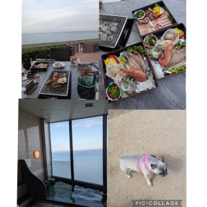 3月8日に母の日と誕生日兼ねてお母さんと旅行してきた(*^_^*) お母さん年なんで近くがいいって事で淡路島旅行してきたヽ(=´▽`=)ノ お母さんリンちゃんと初対面で大喜びでドッグランも初で楽しんでたわ(ノ´∀`*) オーシャンビューの海鮮とお肉のBBQに温泉も貸し切り状態でオーシャンビューで良かったよ(≧∀≦) お母さん脳出血から軽く介護にりん散歩や吐いたりで20時半に寝てしまいすごい早起きし温泉良かった♪~(´ε` ) お母さんも1年に1回やからお酒飲んで喜んでた\(^o^)/ 次また母の日旅行楽しみって嬉しいたまにうつになり旅行行きたくない言われたりで今回喜んでくれて嬉しかった(●´ω`●)
